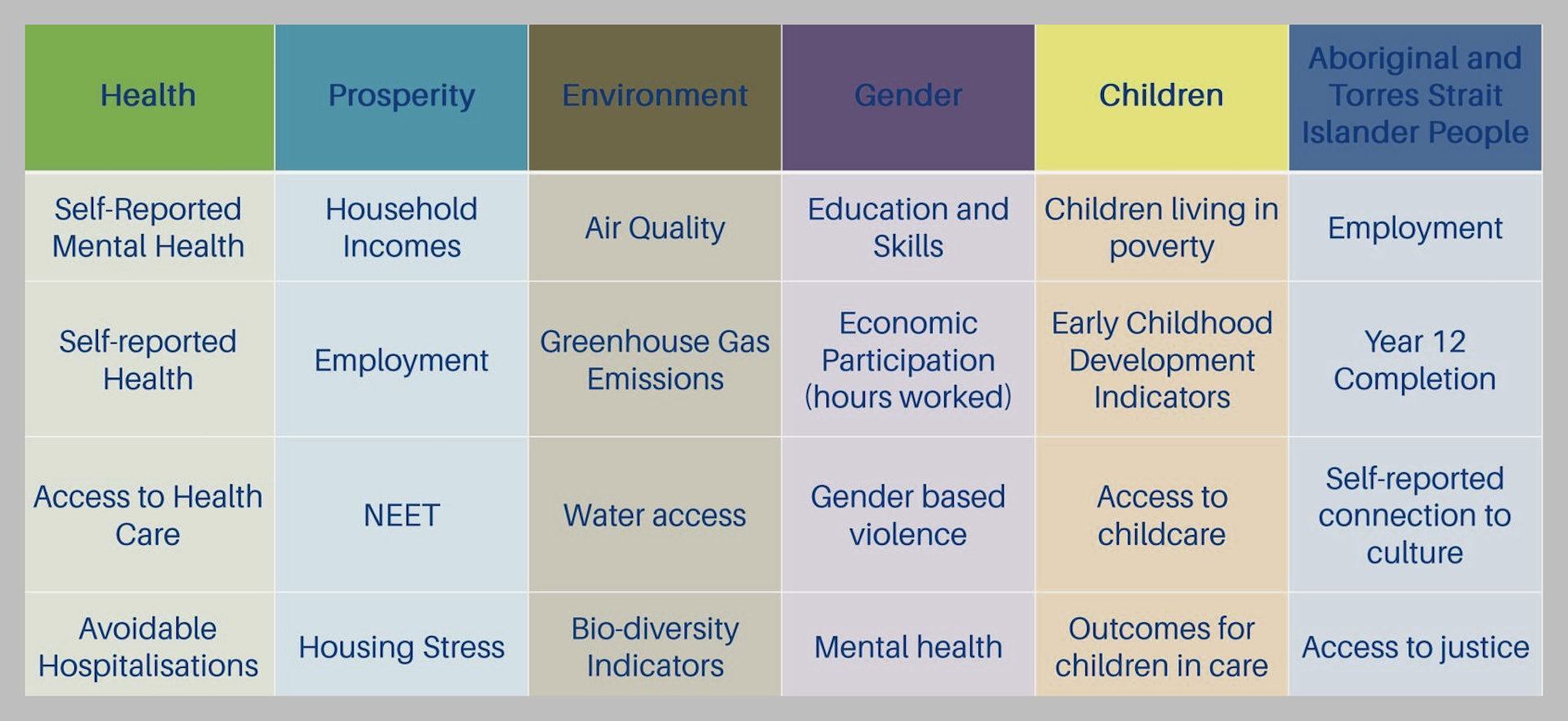 Introducing measurables wouldn’t be about supplanting GDP, but about including it along with other measures of prosperity as outcomes against which the budget could be assessed, along with measures of health, the environment, gender, children’s welfare, and the welfare of Aboriginal and Torres Strait Islander people.