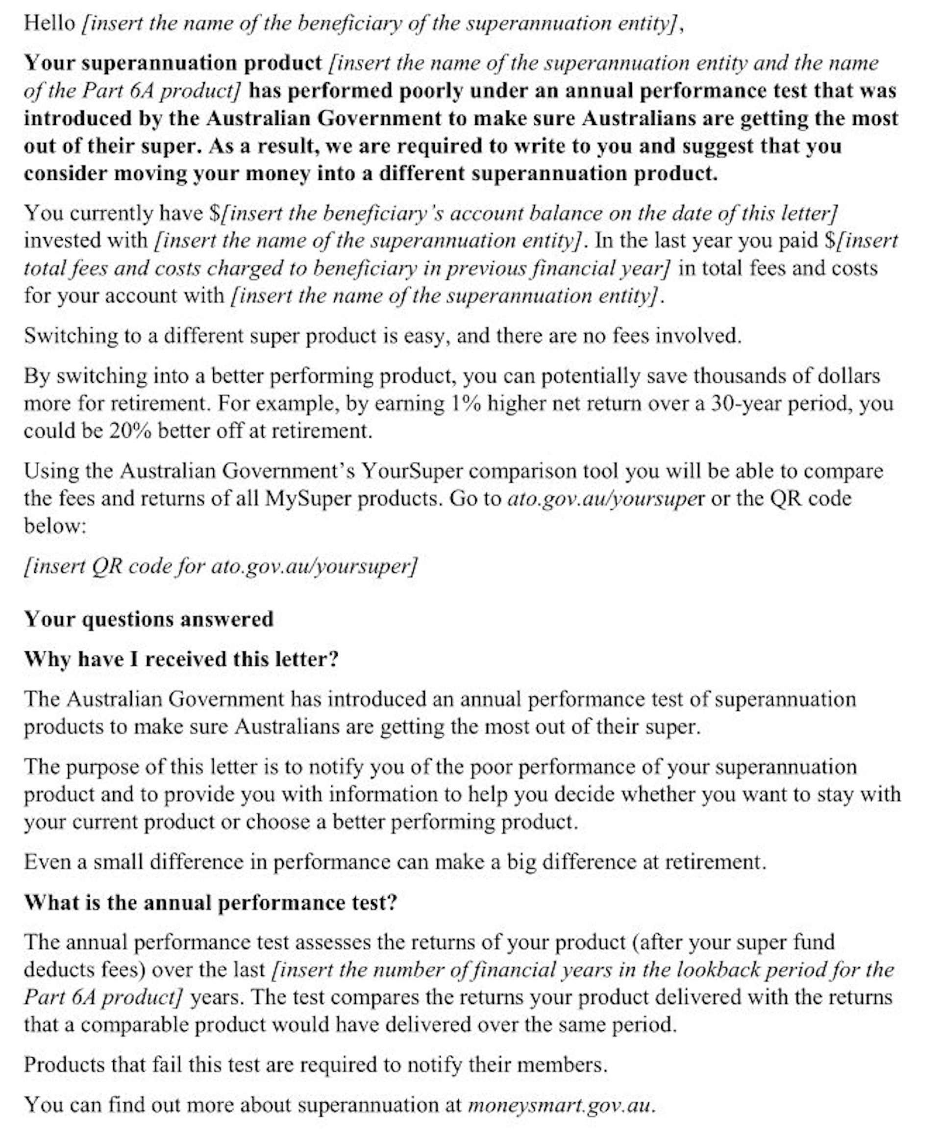 Under the Your Future, Your Super rules the 13 funds that failed were required to write to their members telling them they had performed badly and suggesting they switch to a better-performing product.